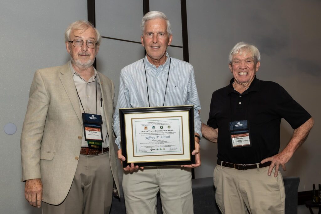 Header image: (from left) Arthur Georges accepts the Behler Turtle Conservation Award from Anders Rhodin and Brad Shaffer. All Photos by Samantha Stephens