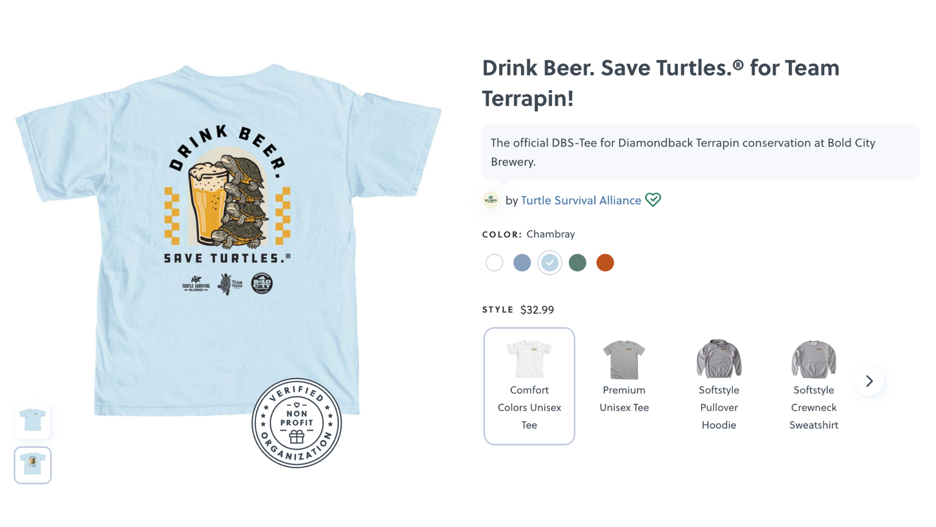 $1 for every beer sold goes towards Turtle Survival Alliance’s mission to protect turtles, including conservation efforts with Team Terrapin, a group of TSA volunteer scientists who support the local Diamondback Terrapin populations.