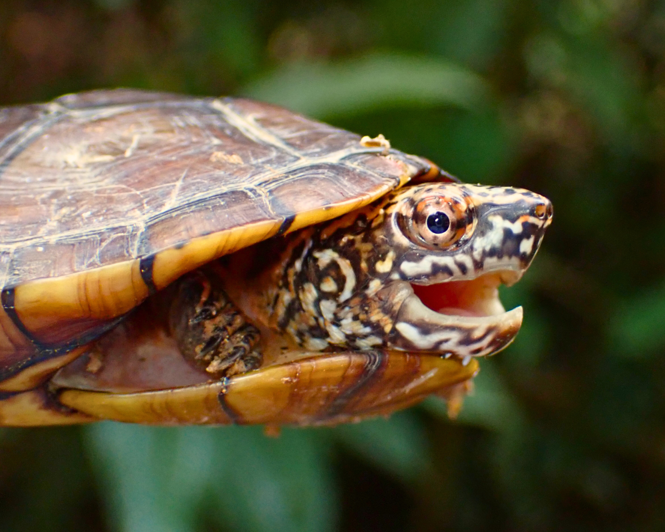 The Tabasco Mud Turtle (Kinosternon acutum) is found throughout parts of Mexico, Guatemala, and Belize. It gets its name from where it can be found in Mexico: Veracruz and Tabasco. This turtle prefers a semi-terrestrial habitat rich in earthworms, insects, snails, and larvae—all essential components of its diet. We support BFREE in conducting on-the-ground surveys to monitor the species’ population status.